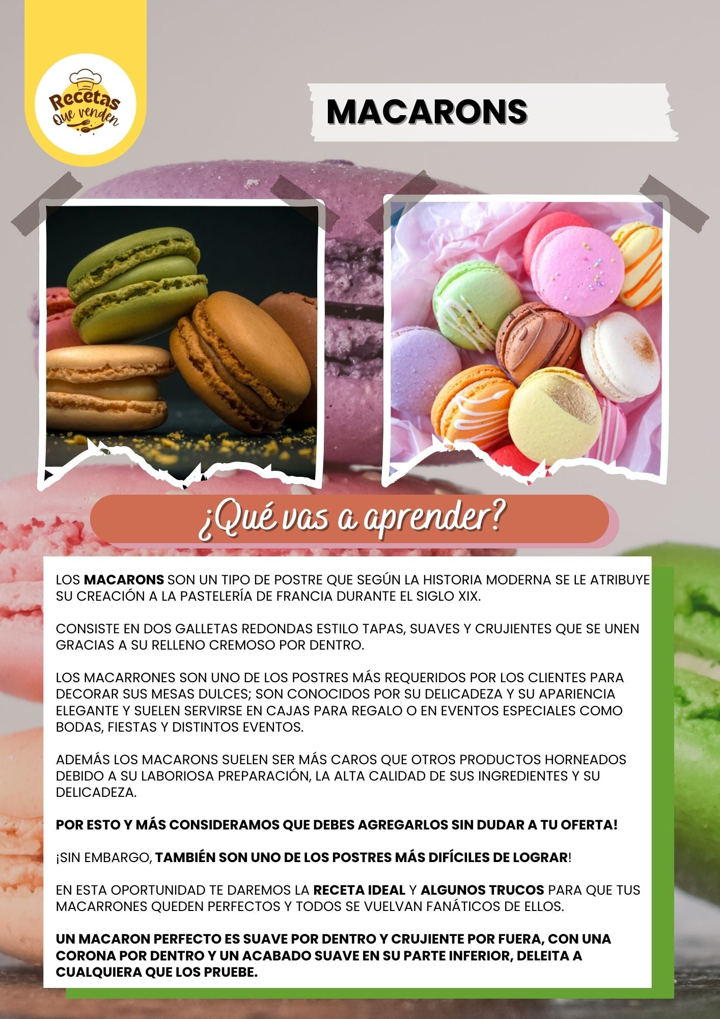 Incluye recetarios detallados paso a paso (cookies, donas, alfajores, brownies, macarons, postres en vaso y más), 25 ideas creativas por receta, tips de venta, mini tutoriales y una plantilla automática en Excel para costear tus productos de forma profesional.